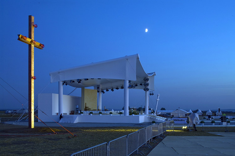 Pódia pro mši papeže Benedikta XVI v Brně spolupráce s arch. Markem Štěpánem, ocelová konstrukce Excon